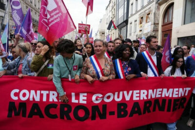 Göstericiler, Macron’un genel seçimleri kazanan sol ve çevreci ittifak Yeni Halk Cephesinin (NFP) ortak başbakan adayı Lucie Castets yerine, merkez sağcı Michel Barnier’yi hükümeti kurmakla görevlendirmesine tepki gösterdi.