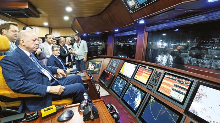 Cumhurbaşkanı Erdoğan, törende bir balıkçı teknesine binerek kaptan koltuğuna oturdu.