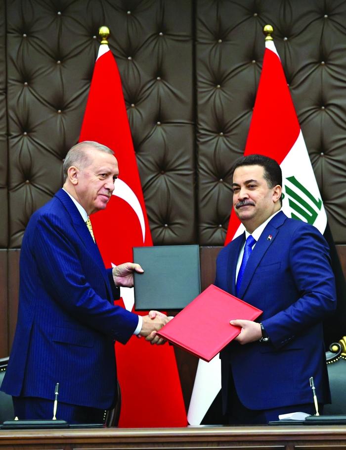 Başkan Recep Tayyip Erdoğan, Başbakan Muhammed Şiya es Sudani ile 13 yıl sonra bir araya geldi. Heyetler arası görüşmenin ardından Ovaköy Sınır Kapısı ve Kalkınma Yolu Projesi’nin de aralarında bulunduğu birçok anlaşma imzalandı. Yapılan toplantıların akabinde ortak açıklamada bulunan Başkan Erdoğan ile Sudai, PKK terör örgütüne karşı ortak hareket etme kararı aldıklarını bildirdi. “Irak ortak tarihi beşeri ve kültürel bağlara sahip olduğumuz, stratejik değer atfettiğimiz bir komşumuzdur” diyen Başkan Erdoğan konuşmasında şunları kaydetti: ‘Irak ile ilişkilerimizi karşılıklı saygı ve iyi komşuluk ilkesi temelinde ortak çıkarlarımızı gözeterek ilerletme yönünde güçlü siyasi iradeye sahibiz. Bugünkü ziyaretimizde bugün bunu bir kez daha teyit etmiş olduk. Ziyaretimin imzalanan anlaşmaların Türkiye-Irak münasebetlerinde yeni bir dönüm noktasını teşkil edeceğine inanıyorum. Sayın Başbakan ile birlikte altına imza attığımız ortak işbirliği için stratejik çerçeve anlaşması sağlam bir yol haritasını teşkil ediyor. Metinle güvenlik, terörle mücadele, ekonomi, ticaret, enerji, ulaştırma, çevre, sınır aşan sular, sağlık, eğitim gibi pek çok alanda teknik müzakerelerin sürdürülmesini ve takibini sağlayacak ortak daimi komiteler kurulmasına karar verdik. Ayrıca güvenlikten ticarete, ulaştırmadan tarıma pek çok başlıkta aktedilen metinler ilişkilerimizin ahdi zeminini güçlendirirken yeni işbirliği imkanlarını da beraberinde getirecektir. İmza altına aldığımız anlaşmaların bihakkın hayata geçirilmesi için de gereken koordinasyonu sağlayacağız.”
