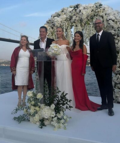 Ortaköy Esma Sultan’da gerçekleşen düğüne çift Ilıcalı’nın sürat teknesiyle geldi. Düğüne sanat ve spor dünyasından birçok kişi katıldı.