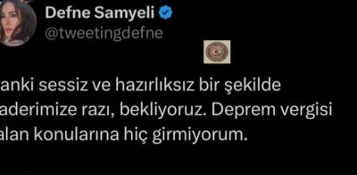Görür’ün açıklamalarının ardından X (eski adıyla Twitter) hesabından paylaşım yapan Defne Samyeli, deprem konusunda hâlâ yeterli önlemlerin alınmadığını belirtti. Samyeli paylaşımında şu ifadeleri kullandı.