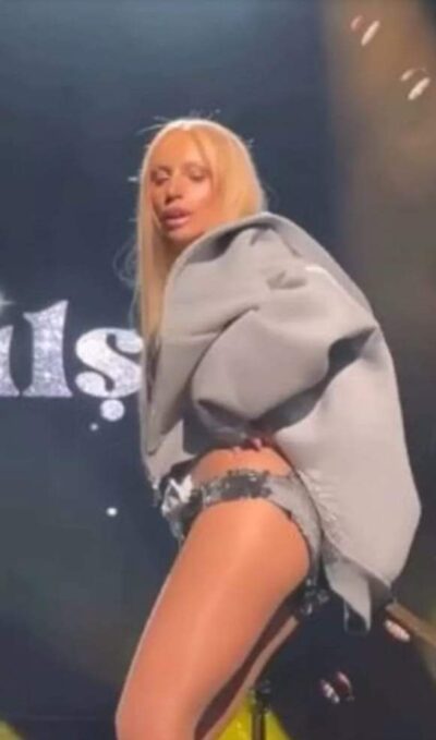 Gülşen, son konserinde gerek ceketiyle gerek çizmeleri gerekse içine tercih ettiği body’si gündem oldu.