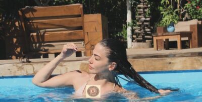 Özdemir, tatilinde çekilen havuz pozlarını Instagram hesabından takipçileriyle paylaştı.
