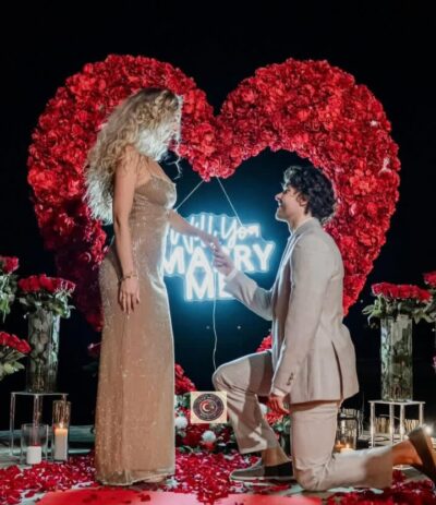 Uzun süredir mutlu bir ilişki sürdüren çift, romantik evlilik teklifiyle sosyal medyada gündem oldu.