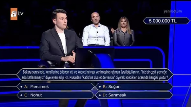İşte “Kim Milyoner Olmak İster?”deki 5 milyonluk soru: