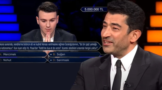”Kim Milyoner Olmak İster?” yarışmasında tarihi anlar yaşandı. 19 yaşındaki yarışmacı Berk Göktaş, geçtiğimiz hafta 1 milyonluk soruya doğru cevap vererek 5 milyon TL değerindeki soruyu açtırmaya hak kazandı. Yarışmacı, soruya doğru yanıt vererek 5 milyon liranın sahibi oldu. İşte ”Kim Milyoner Olmak İster?”deki 5 milyon liralık soru…