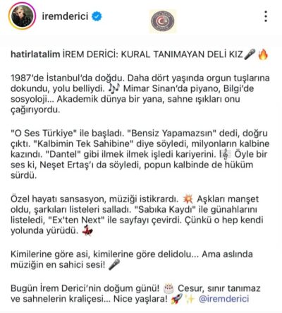 İrem Derici’nin doğum günü, hem hayranları hem de sevenleri için oldukça duygusal bir an oldu.