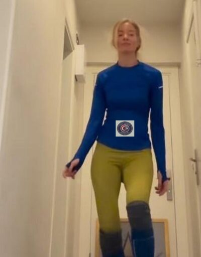 İşçil taytını giyip galibiyet dansı yaparak bu anı paylaştı.