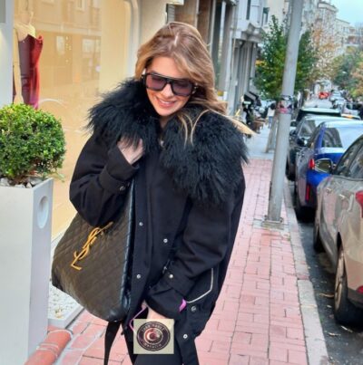 Pelin Karahan, caddede giderken “Türk Haber Magazin” muhabiriyle kısa bir röportaj verdi.