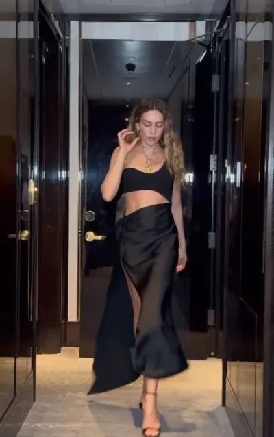 Sinem Kobal, defileden sonra koridorda pozlar verdi. Kobal o pozları Instagram hesaplarından yayınlamayı ihmal etmedi.