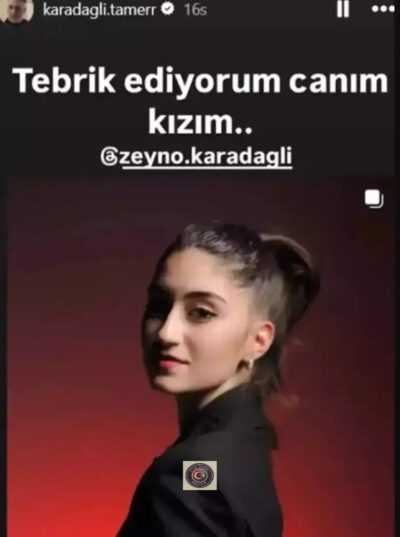 Tamer Karadağlı da kızının başarısını sosyal medyada paylaşarak tebrik etti.
