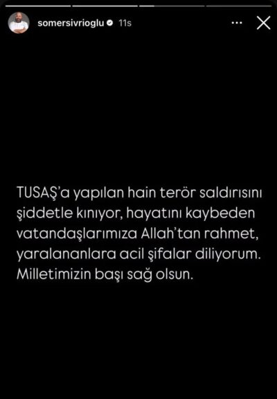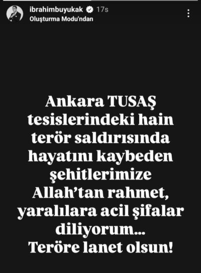 TUSAŞ’a yapılan terör saldırısına: Ünlülerden peş peşe paylaşım geldi.