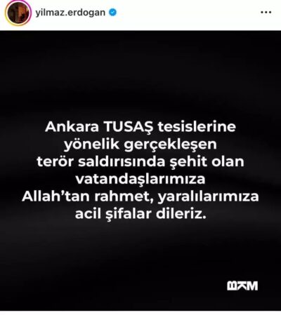 TUSAŞ’a, hain terör saldırısı sonrası ünlü sanatçı ve oyunculardan peş peşe tepkiler mesajları geldi.