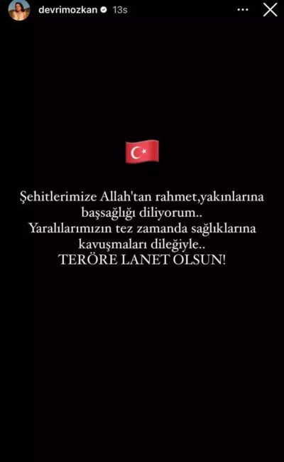 Şehitlerimize Allah’tan rahmet, yaralılarımıza acil şifalar dilerim. Terör örgütü ve destekçilerine lanet olsun. Başımız sağ olsun.