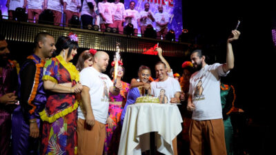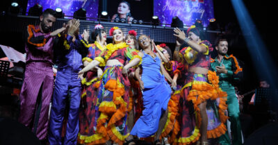 Yıldız Tilbe, ekibin üzerlerinde Yıldız Tilbe fotoğraflı ve “İyi ki doğdun” yazılı tişörtleriyle sahneye çıktı.