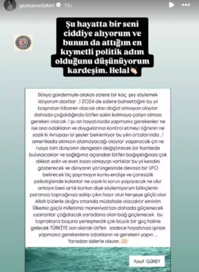 Yusuf Güney, sosyal medya paylaşımında, 2025 yılı için çeşitli kehanetlerde bulundu.