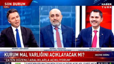 Cumhur İttifakı’nın İstanbul Büyükşehir Belediye Başkan (İBB) adayı Murat Kurum, katıldığı canlı yayında mal varlığını açıkladı. “Mal varlığımızı açıklamada herhangi bir sorunumuz yok.” diyen Kurum, “Ankara’da evimiz var. İstanbul’da evimiz var. 1 tane arabamız var. Biraz da borcumuz var. Mal varlığımız bu” ifadelerini kullandı.