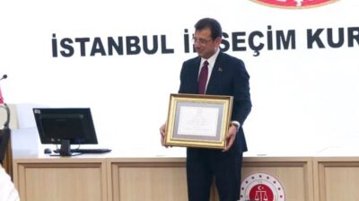 İstanbul Büyükşehir Belediye Başkanı Ekrem İmamoğlu, mazbatasını teslim aldı.