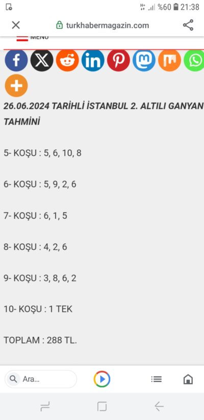 Bugünkü Ganyan yarışında Türk Haber Magazin farkıyla okurlarına ikramiye çıkmıştır.