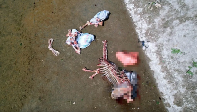 At ve eşekler kesildikten sonra geriye kalan parçalarının torbalara konularak su birikintisi içine atıldığı, çevredeki köpek ve kediler tarafından parçaların çıkartılarak etrafa savrulduğu görüldü.